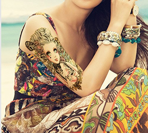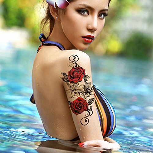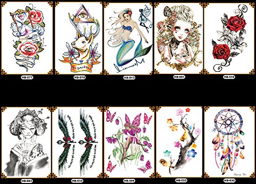 10 Sheets Colorful Half Arm Temporary Paper Sexy Body Tattoo Sticker Water Transfer Tattoo for Professional Make Up Dancer Costume Parties, Shows (HA-05)