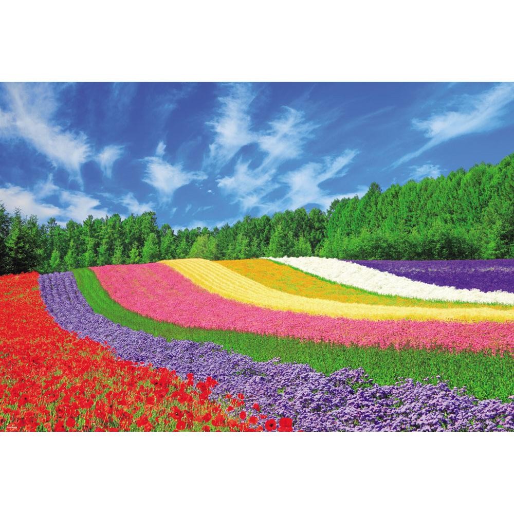 大地に広がる色とりどりの花が穏やかな丘を彩る(北海道)。美しい絵画のような情景と壮大な景観をジグソーパズルでお楽しみください。