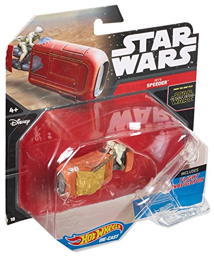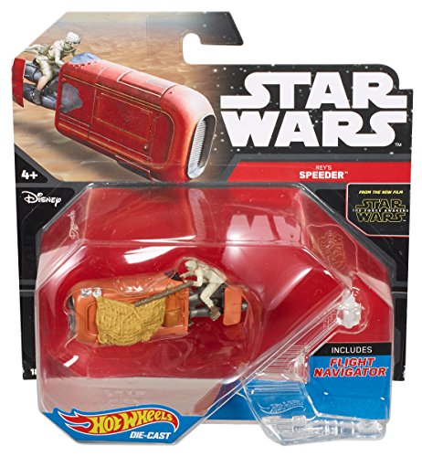 -. Binding : Toy -. Brand : Hot Wheels -. Color : Orange, Silver -. EAN : 0781493258108 -. Feature : From Star Wars: The Force Awakens. / Flight Navigator empowers kids to "fly" their starship / Flight Navigator doubles as a display stand so kids can show off a collection / Collectible scale and authentic design / Makes a great gift for kids, collectors and Star Wars fans of all ages -. Genre : Role Playing -. IsAdultProduct : 0 -. ItemPartNumber : CKJ69 -. Label : Mattel -. Manufacturer : Mattel -. Model : CKJ69 -. MPN : CKJ69 -. PackageQuantity : 1 -. PartNumber : CKJ69 -. ProductGroup : Toy -. ProductTypeName : TOYS_AND_GAMES -. Publisher : Mattel -. Studio : Mattel -. Title : Hot Wheels, Star Wars, Rey's Speeder Die-Cast Vehicle -. UPC : 781493258108 -. Warranty : 1 year warranty against manufacturer defects