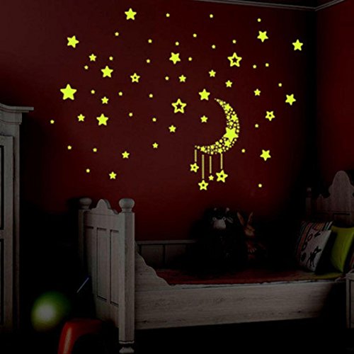 -. Title : Dacawin Removable Plastic Luminous Stars Moon Fluorescent Wall Stickers Glow in the Dark Fluorescent Wall Stickers Decals for Baby Kids Room