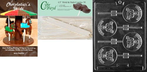 Cybrtrayd 'Wrestler Pop' Sports Chocolate Candy Mold with 50 4.5-Inch Lollipop Sticks and Chocolatier's Guide
