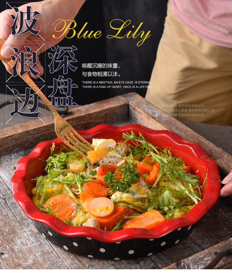 创意波浪边盘托盘家用盘子披萨盘餐盘菜盘陶瓷盘子茶盘水果盘陶瓷