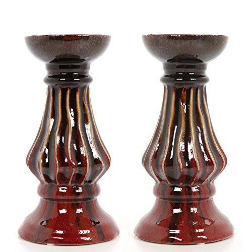 Hosley's SET OF 2 - 9"H Ceramic Pillar Candle Holder, Red Glaze finish Ideal Gift for weddings, House warming, Home office, Spa, Votive / Candle Garden