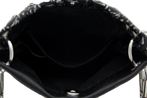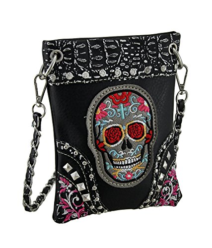 -. Title : Black Sugar Skull Embroidered Trim Rhinestone Cross Body Purse