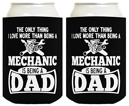 Funny Beer Coolie Mechanic Gift Love Being a Dad More 2 Pack Can Coolies Drink Coolers Black