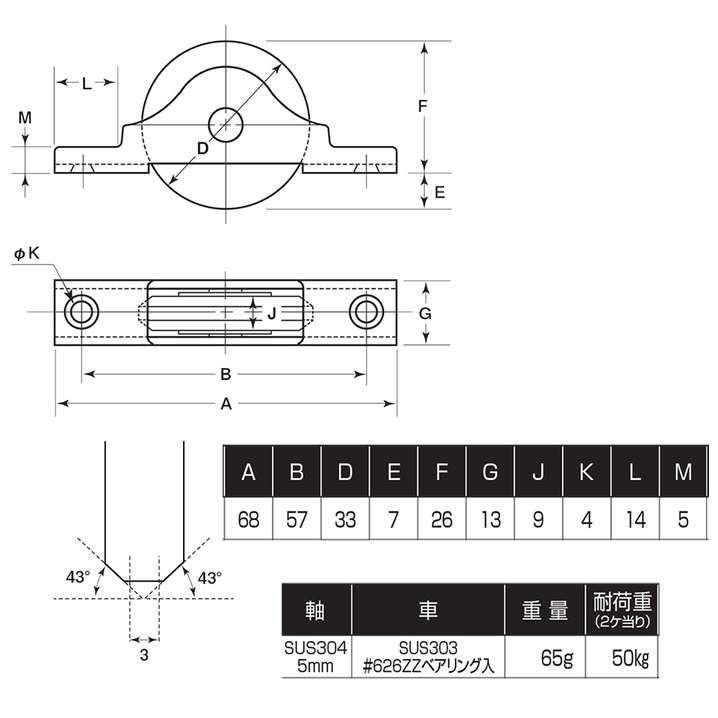 ●材質:本体:SUS304 車:SUS303