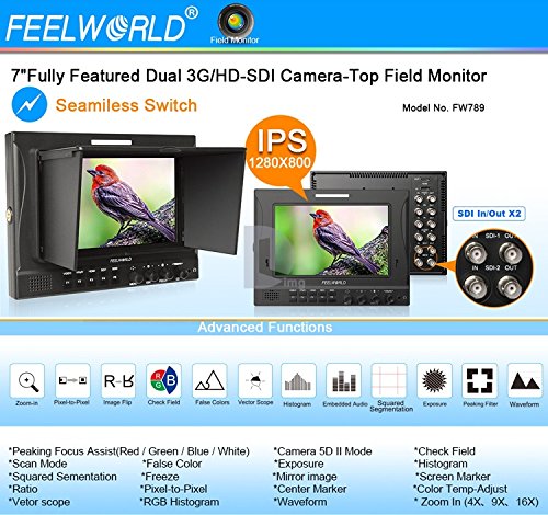 - Title : Feelworld FW789 7" HDMI Field Monitor IPS Screen Dual 3G-SDI 1280×800 High Resolution with Battery Pack and Pergear Clean Kit