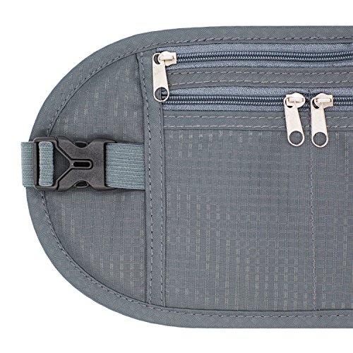 THE ESSENTIAL MONEY BELT FOR THE MODERN DAY TRAVELER: Premium Quality: Only high grade materials used -water-resistant Polyester Lycra, double stitched reinforced seams, Smooth zippers Breathable mesh material. Optimal Capacity: 3 front zippered pockets large space. Internal pockets holds all precious travel documents items together. Secure Protection: Multi-layered lining with latest RFID blocking technology safely protects you from identity thieves high tech pickpockets. Comfortable: Can be worn in multi-positions; over clothes, on the hip or comfortably under clothing against the skin with the skin-friendly breathable rear mesh to keep you cool and dry. Ideal Present: Give family friends the gift of worry free travel. Perfect for husbands, wives, dads, moms, students, golfers outdoor enthusiasts.