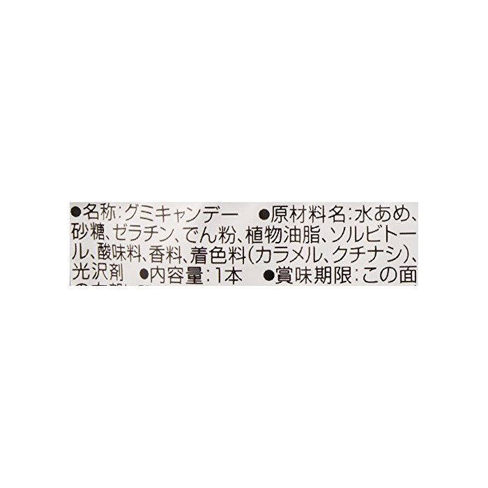 원재료:물엿,설탕,젤라틴,나오지 않겠 분,식물성 기름지,솔《비토루》,신맛료,향료,착색료(카라멜,치자나무)고, 광택 제