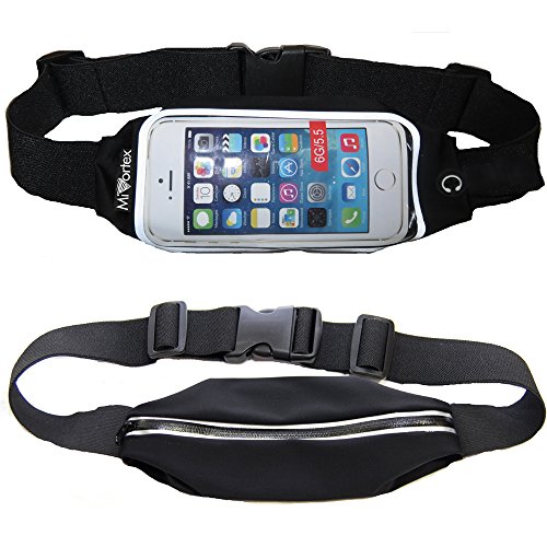 Mivortex Running Belt Runner Waist Pack with Transparent Touch Screen for iPhone 6, 6plus, Galaxy S5 S6 - Fits Otterbox, Lifeproof, Urban Armor Gear cell phone cases Black
