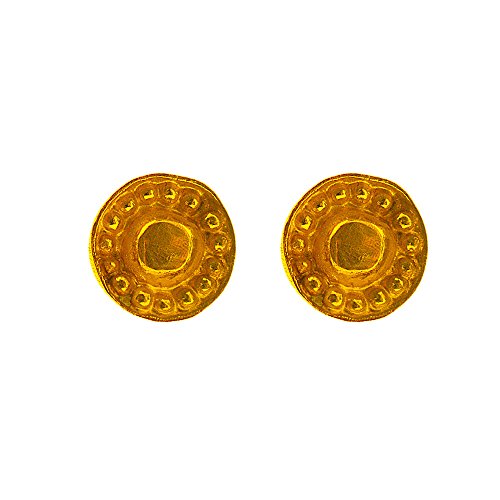 -. Title : 11mm Irregular Yellow Gold Tone Disc Stud Earrings Satin Brushed Finish