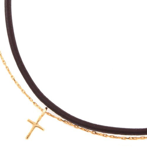 -. Title : 【本革使用・牛革】 革ひも&クロス 2連アンクレット ゴールドxブラウン(a9129-G)