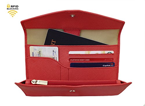 -. Feature : Genuine leather, soft, classy and durable. Dimensions: 6.77" x 3.93" x 0.98". Weight: 4.16oz. / RFID blocking lining to protect your personal information. Snap button closure, keeps contents secure and in place. / Spacious: 1 passport pocket, 1 cellphone or paper cash pocket, 5 credit card slots, 1 SIM card pocket, 1 ticket/boarding pass pocket, 1 zippered coin pouch, 1 key ring for small lage lock key, and 1 small pen holder. / Storing cash: there is a large pocket behind the zippered coin compartment that is ideal for storing cash. Cash can also be stored in the pocket where the passport is stored as shown in the photos. / GIFT BOX: This wallet comes in elegant gift box packaging and would make an ideal gift.