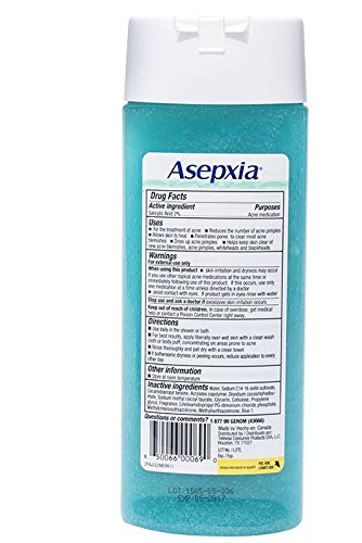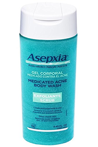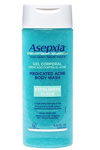 Asepxia Shower Gel Acne Blackhead Pimple Treatment & Exfoliating Scrub with 2% Salicylic Acid, 8.5 Fluid Ounce