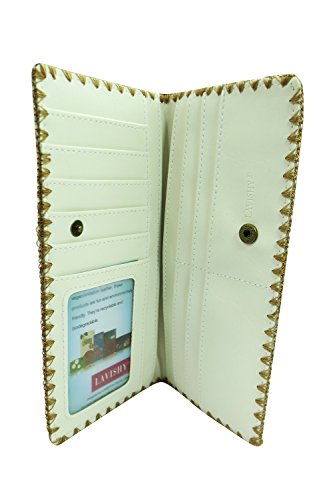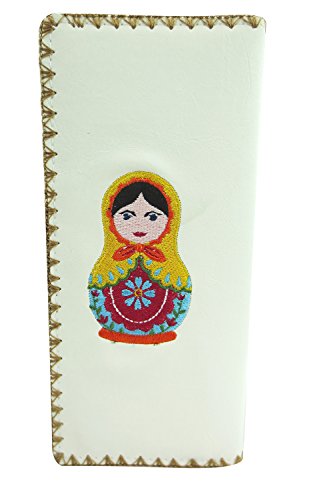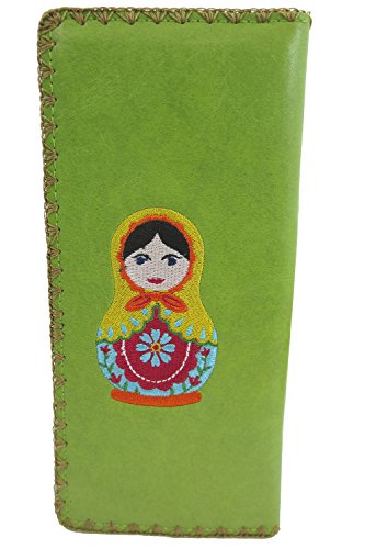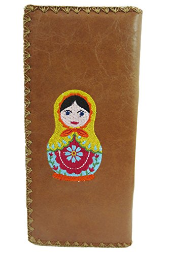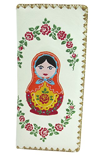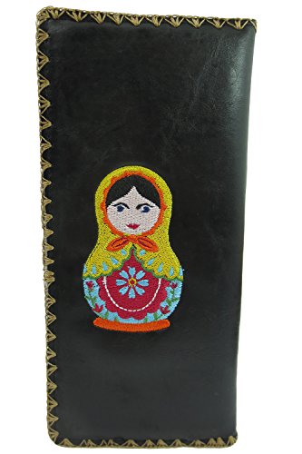 -. Binding : Apparel -. Brand : Lavishy -. Department : womens -. Feature : It has one photo ID, 11 card slots and one zipper pocket inside for change / Made with Vegan/Faux Leather / Size : 7.5" x 3.75" / Bi-fold Wallet / Comes in a beautiful gift box -. Model : LV-97180 -. PackageQuantity : 1 -. ProductGroup : Apparel -. ProductTypeName : ACCESSORY -. Size : Large -. Title : Lavishy Beautiful Russian Nesting Doll and Flower Embroidered Large Wallet