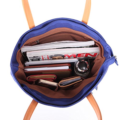 Sornean Heavy Duty Canvas Tote Bag Shoulder Bag Shopping Bag with PU Handle Zipper Closure