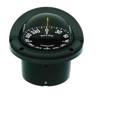 Ritchie Helmsman Compass Flat-Card Dial With Flush Mount And 12V Green Night Lighting (Black, 3 3/4-Inch)
