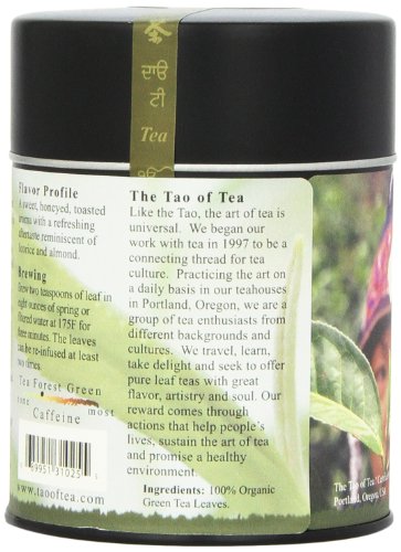 -. Binding : Grocery -. Brand : The Tao of Tea -. EAN : 0689951310255 -. Feature : Pack of two, 2-ounce tins (total of 4 ounces) / 100% organic -. Label : The Tao of Tea -. Manufacturer : The Tao of Tea -. NumberOfItems : 2 -. PackageQuantity : 2 -. ProductGroup : Grocery -. ProductTypeName : GROCERY -. Publisher : The Tao of Tea -. Size : 2 Ounces -. Studio : The Tao of Tea -. Title : The Tao of Tea, Tea Forest Green Tea, Loose Leaf, 2-Ounce Tins (Pack of 2) -. UPC : 689951310255