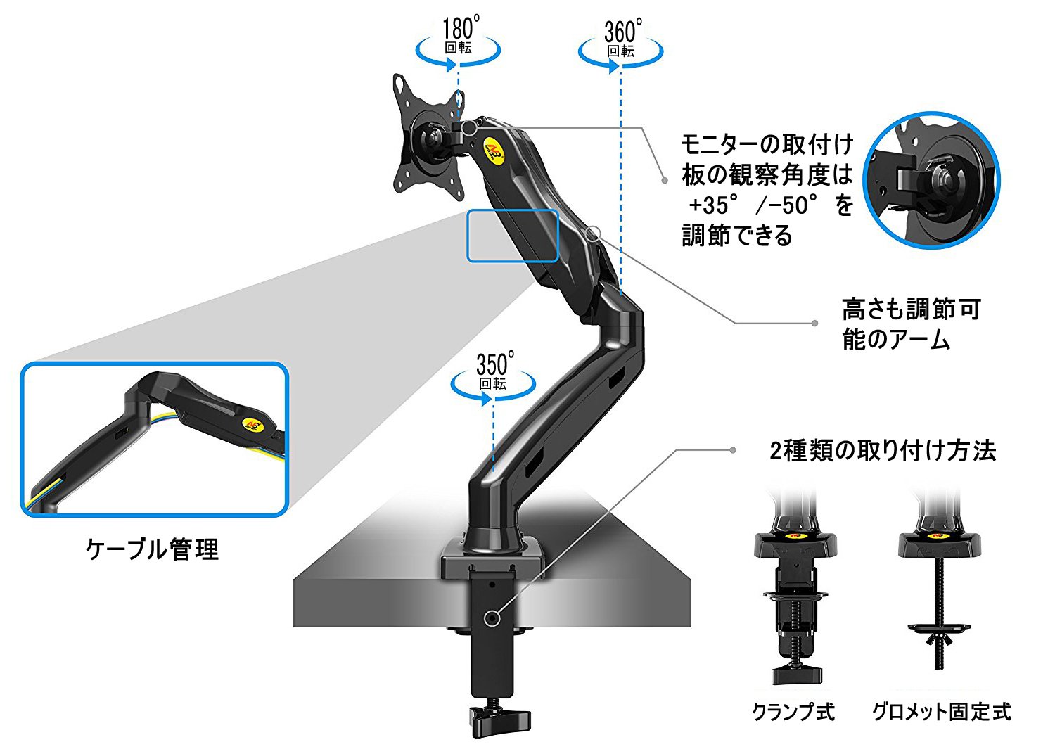 The inclination angle is + 35 ° / - 50 °, it can be adjusted in multiple directions, up and down, right and left.