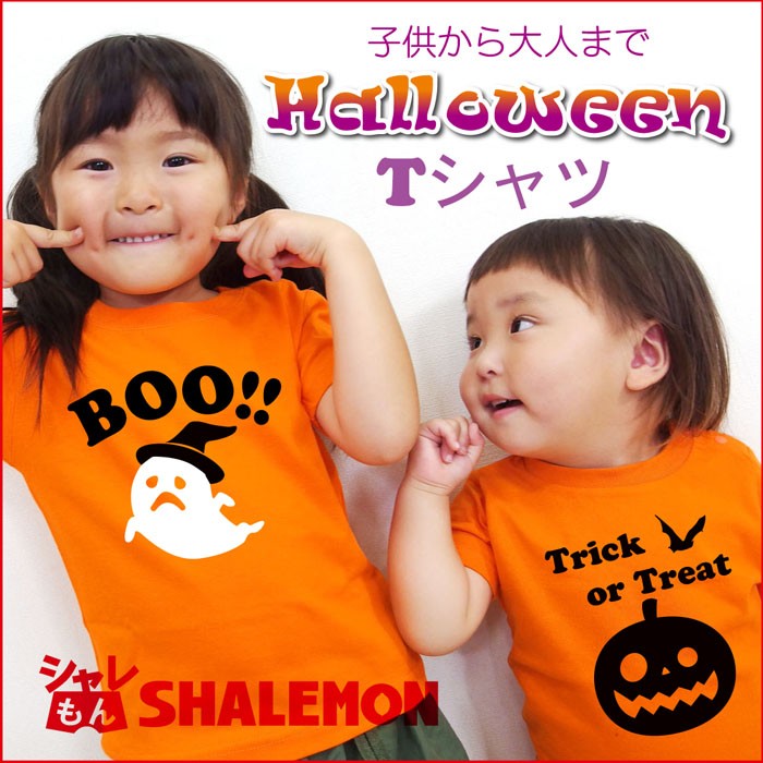 2つのデザインから選べるハロウィンtシャツです。「かぼちゃ」か「おばけ」のどちらか好きなデザインをえらんでくださいね。サイズは子供用~大人用までございますので、家族みんなでハロウィンtシャツでお揃いに!しっかりとした厚手の生地tシャツです。首回りもしっかりとしたダブルステッチで洗濯しても、ほとんど伸びません。品質に自信あり!プリント部分も高品質。このパンプキンtシャツ以外にも当店“シャレもん”では沢山のハロウィン商品を取り扱っておりますので、そちらもご覧ください
