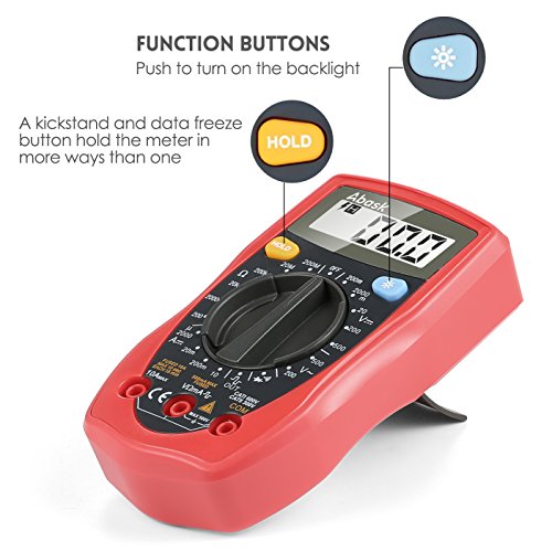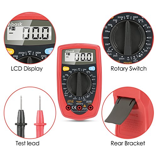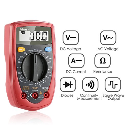 - WIDE RANGE OF APPLICATIONS: Abask digital multimeter can measure AC and DC voltage, DC current, resistance, temperature, diode forward voltage drop and circuit on and off. It's the ideal maintenance tool for the majority of users.