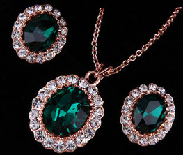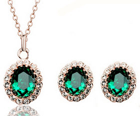 18 K berlapis emas zamrud hijau kristal Austria perhiasan Set dengan 2 Pcs Eearrings + kalung ocean heart necklace , 18 K white gold plated pendant jewelry Fashion FAS SJA3247238479 zy qty000