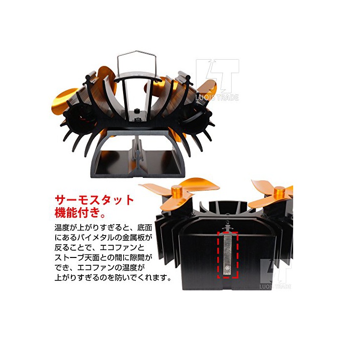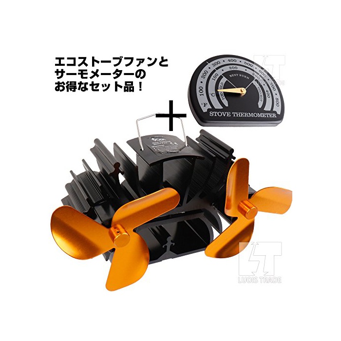 원본상품명: 度計 & エコ ストブファン 3ブレド 2軸 (ゴルド) 電池不要 空を循環 度を管理 エコファン 省エネ