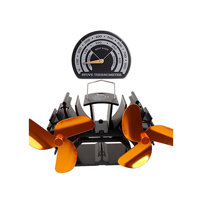 알파 라벨 온도계 & 에코 스토브 팬 3블레이드 2축 (골드) 전지 불요 공기를 순환 온도를 관리 에코 팬 에너지 절약