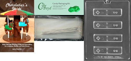 Cybrtrayd Mdk25SBk-K169 Small Game Controller Chocolate Candy Mold with Packaging Bundle, Includes 25 Cello Bags and 25 Silver Twist Ties