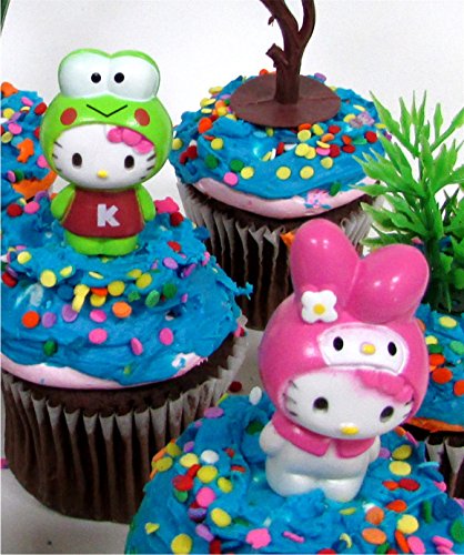 12 Piece HELLO KITTY Birthday Cupcake Topper Set Featuring Hello Kitty Figures and Decorative Accessories
