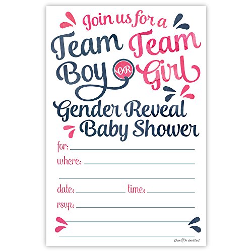 Team Boy or Team Girl Gender Reveal Baby Shower Invitations (20 Count) With Envelopes