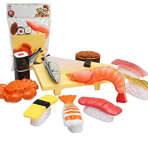 -. Feature : INCLUDES knife,cutting board,7pcs Sushi,fish,shrimp and crab / CHILDREN can pretend-slice fruit on the cutting board / DEVELOPS children's abilities of recognition,imagination,hand-brain cooperation and communication / HEALTHY material and HIGH quality / PRETEND-PLAY can make convenient relationship between parents and children