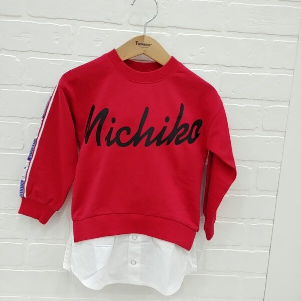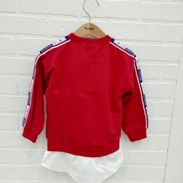 트렌디한 로고 테잎과 레터링 그래픽으로 포인트를 준 레이어드 티셔츠.