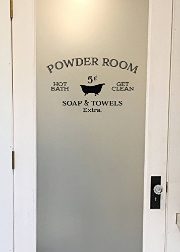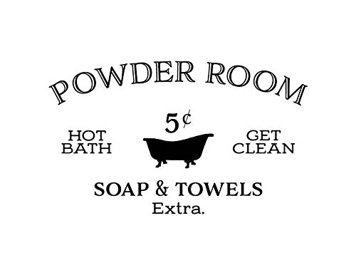 Powder Room Hot Bath Get Clean Soap and Towels Extra Wall Decal Bathroom Decor Sign, Washroom Door, Wall Decal, Vinyl sign (Black,14X24 Inch)