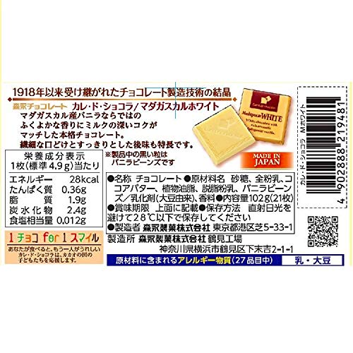 原材料:砂糖、全粉乳、ココアバター、植物油脂、脱脂粉乳、バニラビーンズ/乳化剤(大豆由来)、香料
