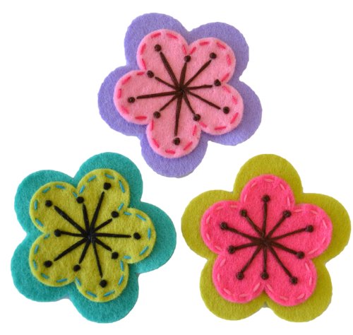 Set of 3 handmade felt flower hair clips from Funny Girl Designs Flowers measure 2`` x 2`` The flower is attached to a 1 3/4`` double pronged alligator hair clip You will receive the 3 clips shown in the picture Each Hair Clip and Applique is meticulously handcrafted and Proudly made in the USA by Funny Girl Designs.