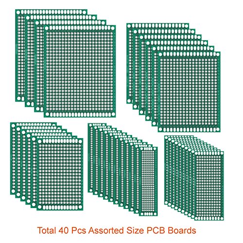 Paxcoo 40Pcs Double Sided PCB Board Prototype Kit for DIY Soldering and Electronic DIY projects, 5 Sizes