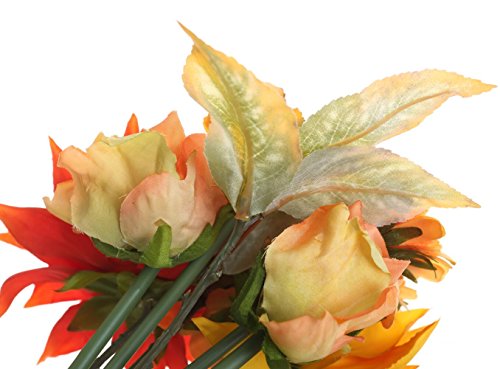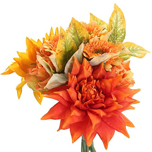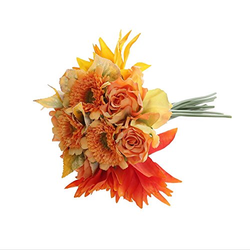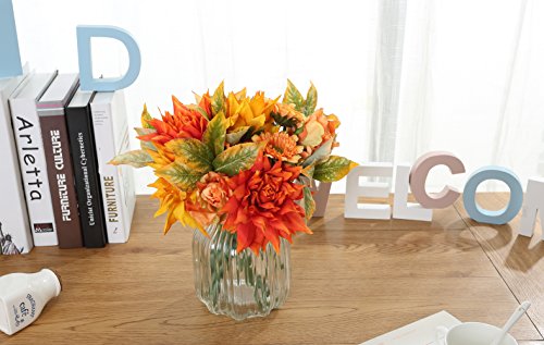 Total length approx 11.8'', each bouquet has 10 stems with 2 big Clematis, 3 small Chrysanthemums, 2 rose flowers and 2 stem vivid Leafs