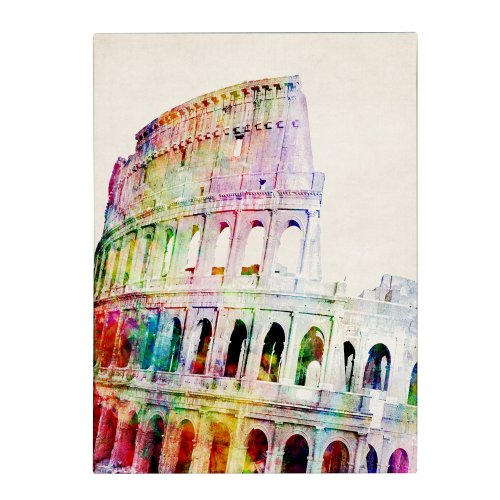 This ready to hang, gallery wrapped art piece features the Colosseum. Art and design were always Michael's favorite subjects at school. He was fortunate to land a job as a graphic designer at one of London's most prestigious publishing companies. After 12 years Michael Topsett made the decision to pursue a full-time career creating his own work. The freedom and time to be able to focus solely on his own projects has been a wonderful experience. Athrough Michael likes to experiment with different styles and subjects, hi main focus is on map art. He enjoys looking for unique and interesting ways to depict something which is very familiar. Maps are visual representations of the world we live in, a world which is incredibly diverse. Apart from maps, Tompsett creates urban landmark and cityscape designs. Giclee (jee-clay) is an advanced printmaking process for creating high quality fine art reproductions. The attainable excellence that Giclee printmaking affords makes the reproduction virtually indistinguishable from the original piece. The result is wide acceptance of Giclee by galleries, museums, and private collectors. Gallery wrap is a method of stretching an artist's canvas so that the canvas wraps around the sides and is secured a hidden, wooden frame. This method of stretching and preparing a canvas allows for a frameless presentation of the finished painting.Feature
