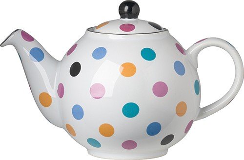 -. Feature : London Pottery White 6 Cup Teapot with Multicolored Spots / 6 cup teapot has a 1.5L capacity. / Dimensions: Height:17cm/6.75" Width:25cm/10" Depth:15cm/6" / Gift boxed; ceramic / Dishwasher safe