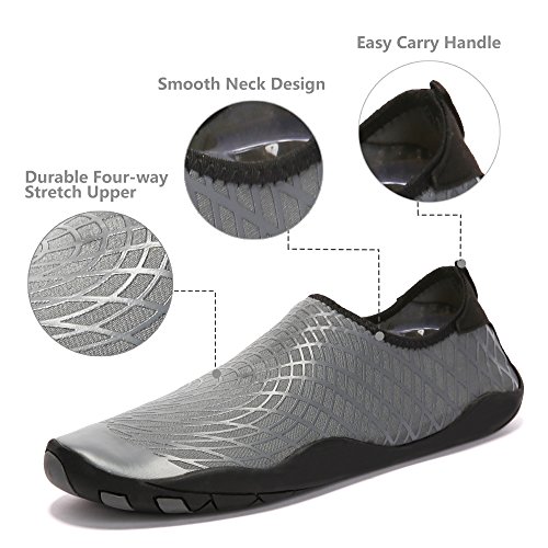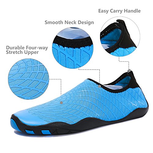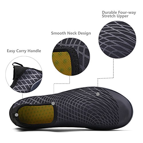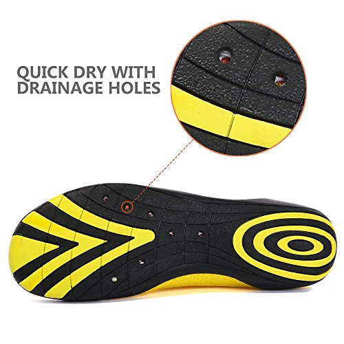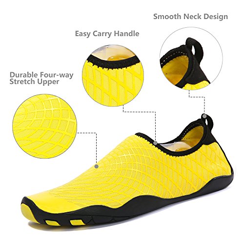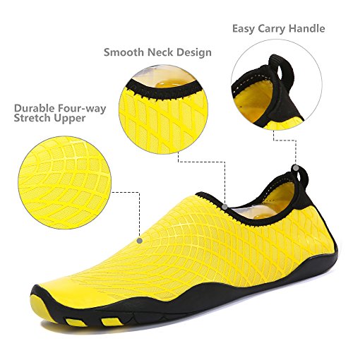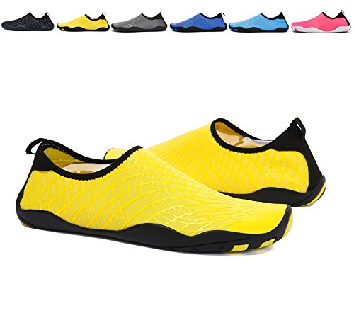 Store easily,and fold up nicely when not in use,so you can take them on the go, whether you're traveling, or visiting a studio to practice Easy to clean, and quick to dry, so you don't have to worry about them starting to smell over time, or stay wet for hours while you're waiting for them to dry before you can put them back in the bag ?Extremely breathable, so your feet will breath and sweat can escape while you're doing a deep stretch Feature a slip resistant rubber sole, so even if the bottoms get wet, you don't have to worry about slipping or sliding around on the mat Fit for any water aerobics exercises, outdoor hiking sports, running, jogging, walking, beach, snorkelling, swimming, pool, weight training, boating sailing, parasailing, kayaking, windsurfing, cycling, fishing, Beach volleyball, garden, lawn, park, lake, yoga, car-washing and driving 0