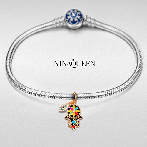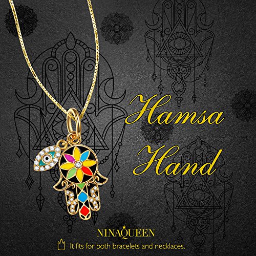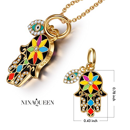 -. Title : NinaQueen "Hamsa Hand and Evil Eye" 925 Sterling Silver Multicolor Enamel Lucky Dangle Charms, Pendant for Choker Necklace