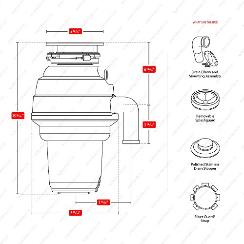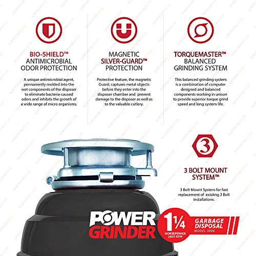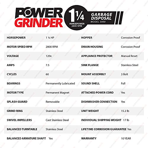 NORTHSTAR DECOR PG-3000 Power Grinder Garbage Disposal. Industry Leading 1.25 HP (Commercial Grade). Includes Power Cord, Magnetic Ring, Disposal Connectors, Stainless Steel Sink Flange & Stopper
