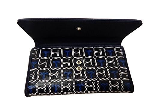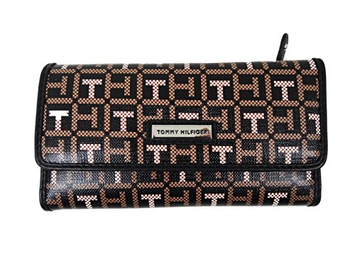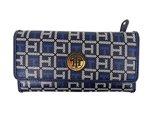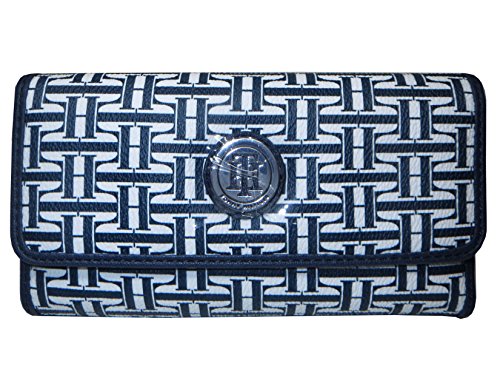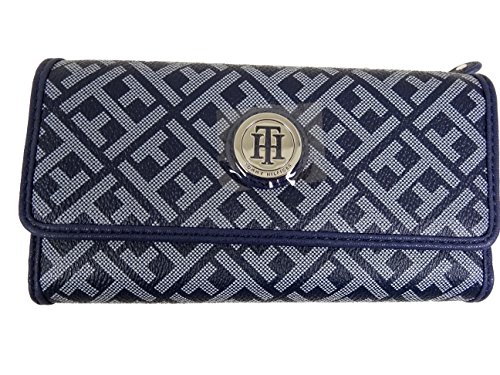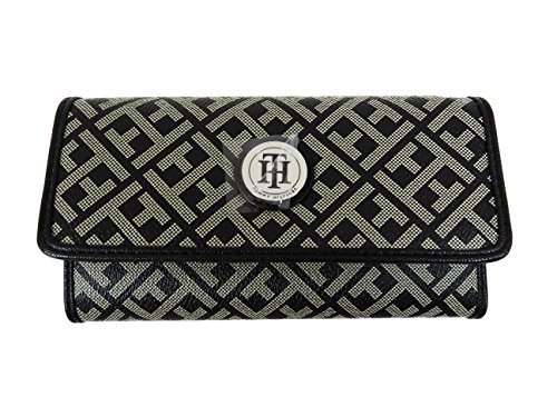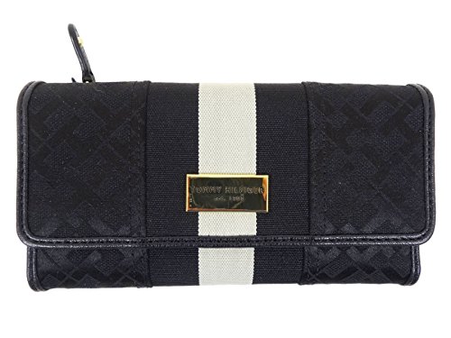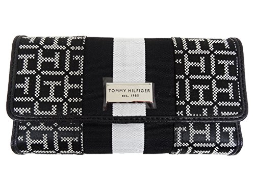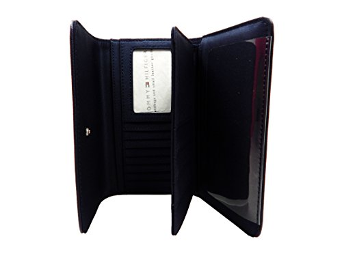 Travel in style with this deluxe Tommy Hilfiger Signature Continental Logo Wallet, complete with a premium fabric lining and the unique silver plated logo. Tommy Hilfiger uses only the finest quality custom material in crafting their handbags. Each piece slight texture and color variation to give their product its own unique character over time. Enjoy the classic styling and unique design of your Tommy Hilfiger wallet! Pair it with the many style of totes and shoppers available!Feature
