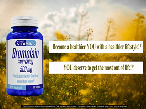 GET HEALTHIER TODAY - Every capsules delivers 500mg of Bromelain. Bromelain supplements have proteolytic properties or protein digesting properties. When taken without food Bromelain has been known to support anti-inflammatory activity and help reduce pain associated with inflammation. *