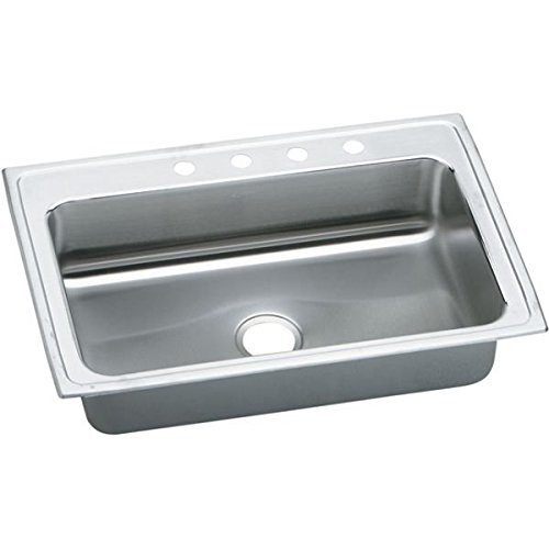Elkay LRS33224 Gourmet Lustertone 4-Hole 33-Inch x 22-Inch Single Basin Top-Mount Stainless Steel Kitchen Sink