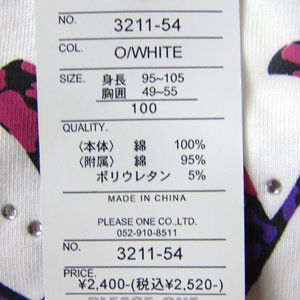 品 質 本体/綿100% 附属/綿95% ポリウレタン5%