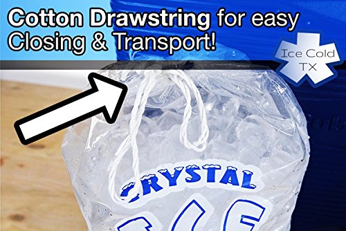 - 10lb Ice Bag with Draw String to easily close Icebags and transport! Save money using your own Ice Machine to bag 10 pounds of ice. With comfortable Cotton Strings included, no Twist Ties are needed for these Reusable Disposable Bags!