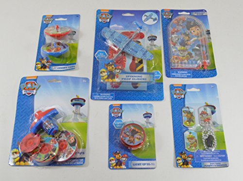 Product DescriptionA fun Nickelodeon PAW Patrol toy gift set! This group includes: - PAW Patrol 2pk Spinning Tops - PAW Patrol Stacking Tops - PAW Patrol Licensed Pinball Game - PAW Patrol 2pk Prop Plane Gliders - PAW Patrol 3pk Dog Tags - PAW Patrol Light Up Yo-Yo This is a great little package for any fan of the anything PAW Patrol!0