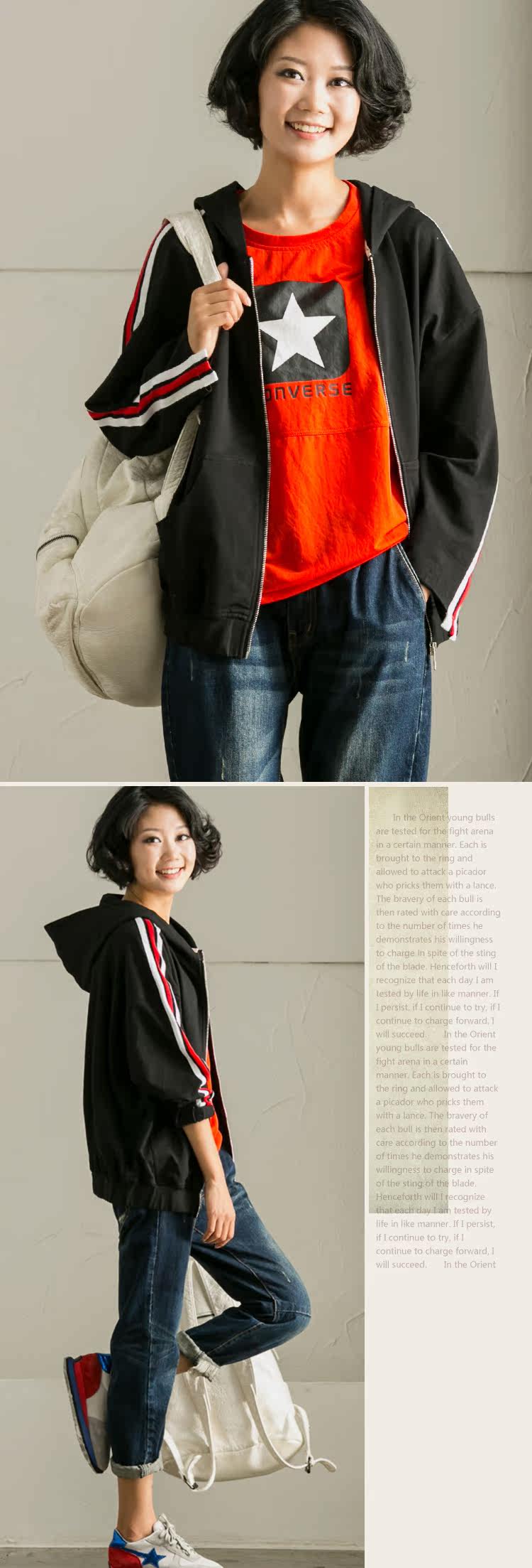 | 模特尺寸 | 鑫鑫 | 身高169cm | 体重45kg | 腰围57cm | 臀围84cm | 平时穿着L码 |